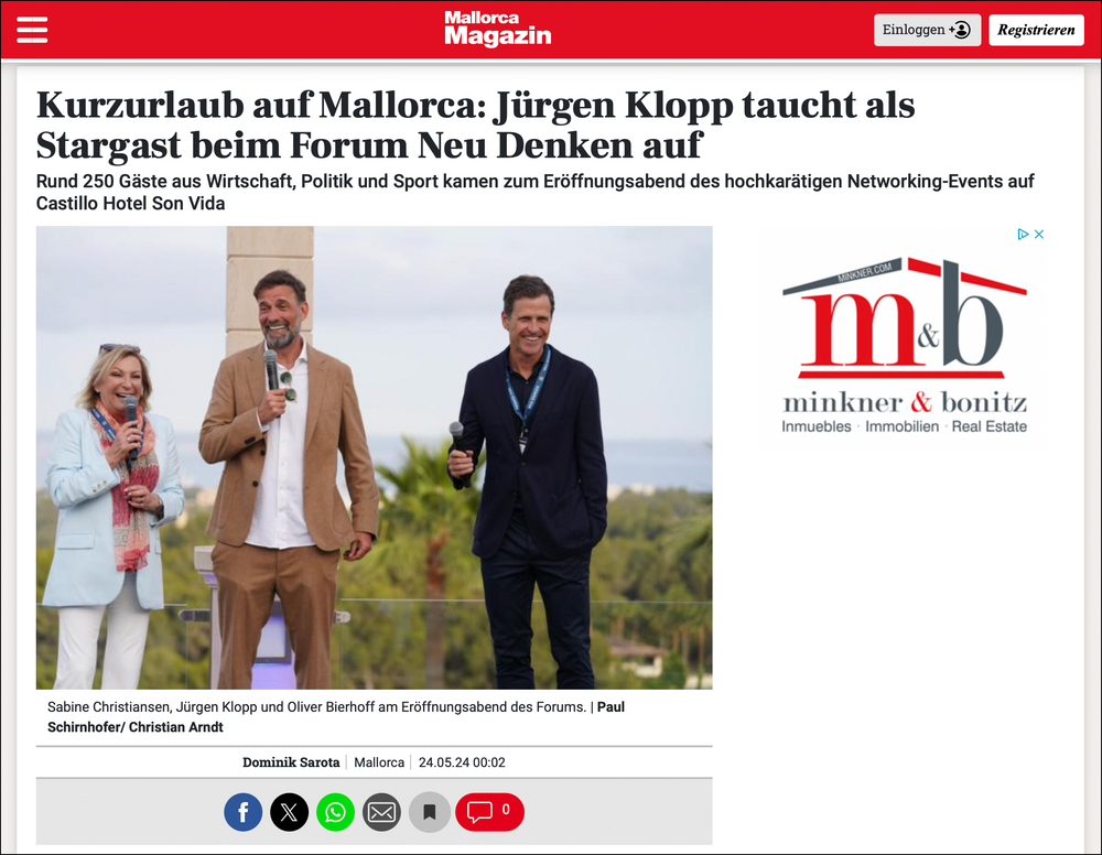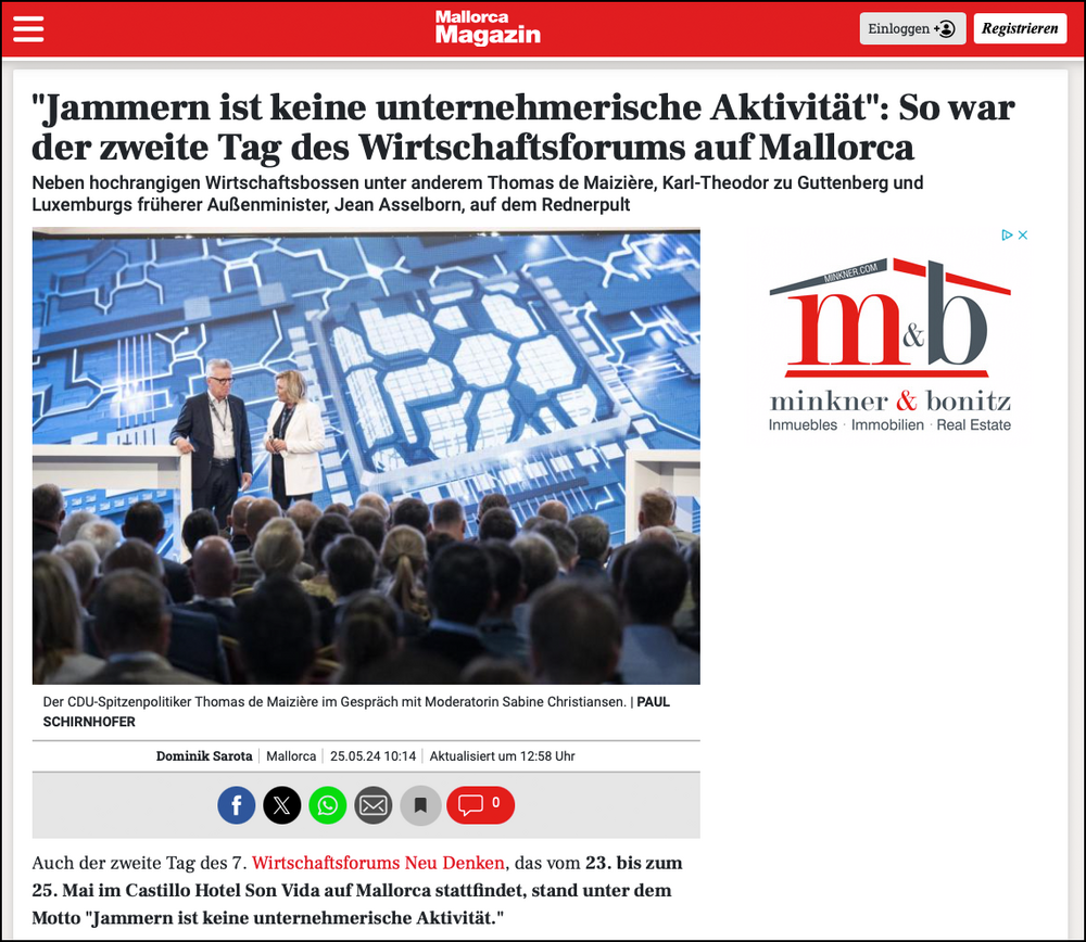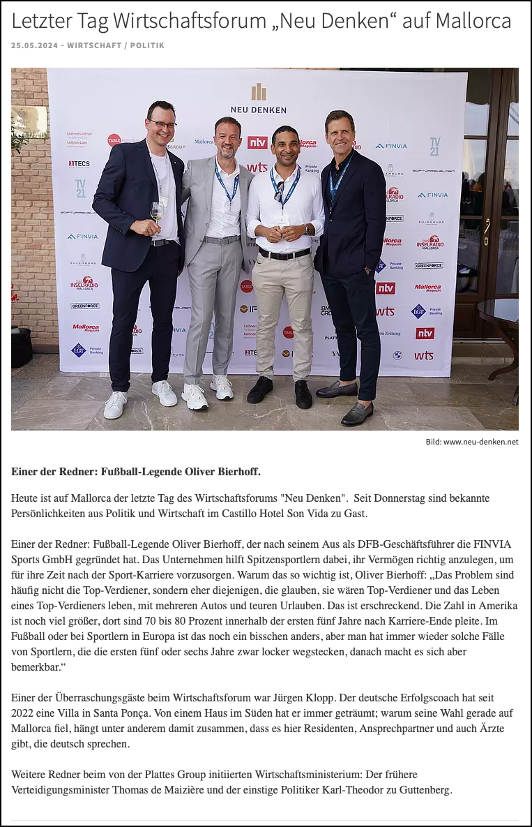 "Jammern? Hilft nicht. NEU DENKEN ist besser. Und selbst Lösungen finden. Auf die deutsche Politik zu hoffen, ist Zeitverschwendung. Sie gegenwärtig nicht das, was von ihr gefordert wird." Das sagte mir Willi Plattes, Steuerberater und Chef der PlattesGroup, als ich ihn am Freitag beim Wirtschaftsforum „Neu Denken“ in Palma traf. Plattes initiierte den Gipfel - in diesem Jahr zum siebten Mal. Am Samstagabend kam ich zurück von meinem kurzen Abstecher nach Palma. 48 Stunden konstruktiver Austausch mit einer ganzen Reihe der rund 250 Gäste. Mit dabei: Unternehmer, Manager und Experten aus unterschiedlichen Bereichen sowie frühere Akteure der Politik. Aktive Top-Politiker hatten abgesagt.